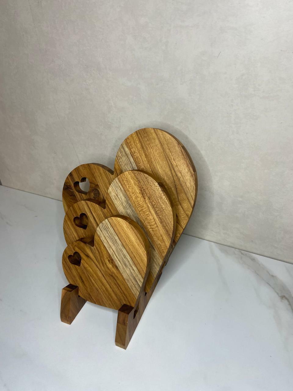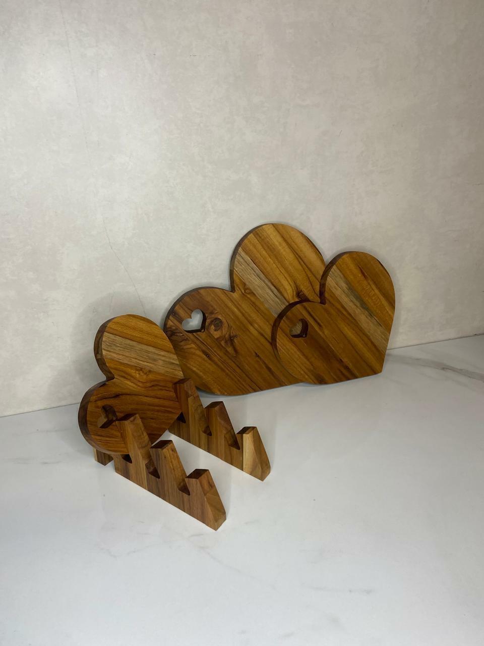 Transforme sua cozinha em um espaço de estilo e elegância com nosso Trio de Tábuas com Coração Vazado. Mais do que simples utensílios, essas tábuas de madeira de pinus são verdadeiras obras de arte, adicionando um toque de charme à sua decoração. Com três tamanhos diferentes, você pode exibi-las em sua bancada, prateleira, armário ou mesa, proporcionando um visual encantador e funcional.