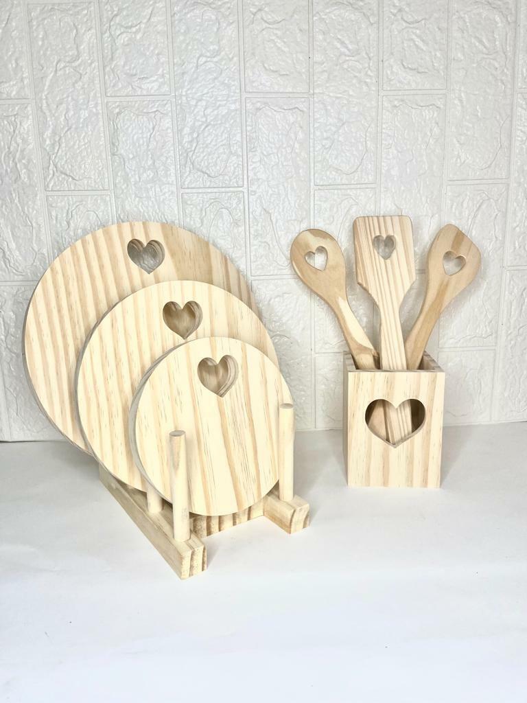 KIT COMPLETO: ( Trio de tábuas redonda, Suporte, Porta colher, Trio de Colheres)