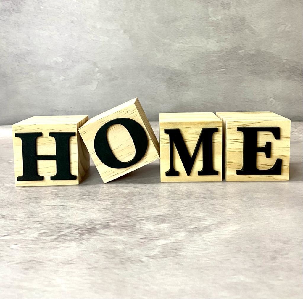 Para te inspirar e no seu dia-a-dia use os cubos em madeira que formam a palavra Home.